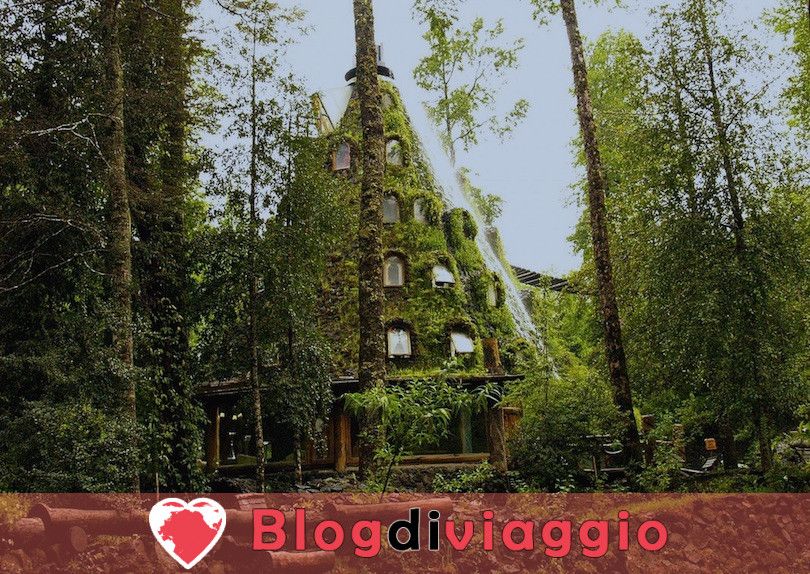 Avete mai desiderato soggiornare in una casa sull’albero o magari in un vulcano? L’hotel, immerso in una foresta pluviale, ha la forma di un vulcano, che sputa acqua al posto della lava, ed è ricoperto di muschio e di altra vegetazione; alla fine della giornata ci si può rilassare in una vasca idromassaggio scavata in un enorme albero.